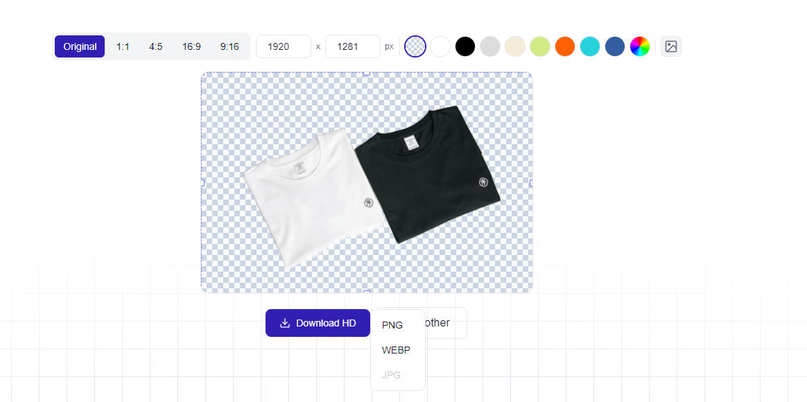 Download the result as PNG to preserve the transparent background. PNG is the only format that supports transparency; JPG and WebP will apply a solid background automatically. If you need a white background rather than transparency, see our guide on how to change an image background to white instead.
